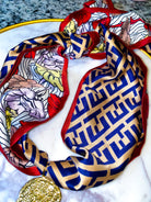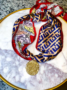 Gorgeous designer inspired reversible scarf. Fall flower pattern with gold disk charm pendent.