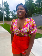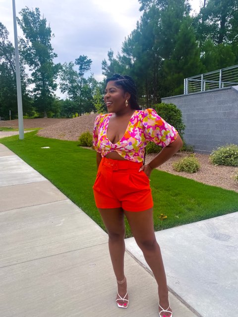 The perfect shorts have arrived with our Boss Babe High Waisted Shorts in Powder Blue. True high waisted short with a zipper fly and front box pleat details for a classy look. Matching belt included with side pockets. Shorts are lined. Model is pairing the shorts with our
