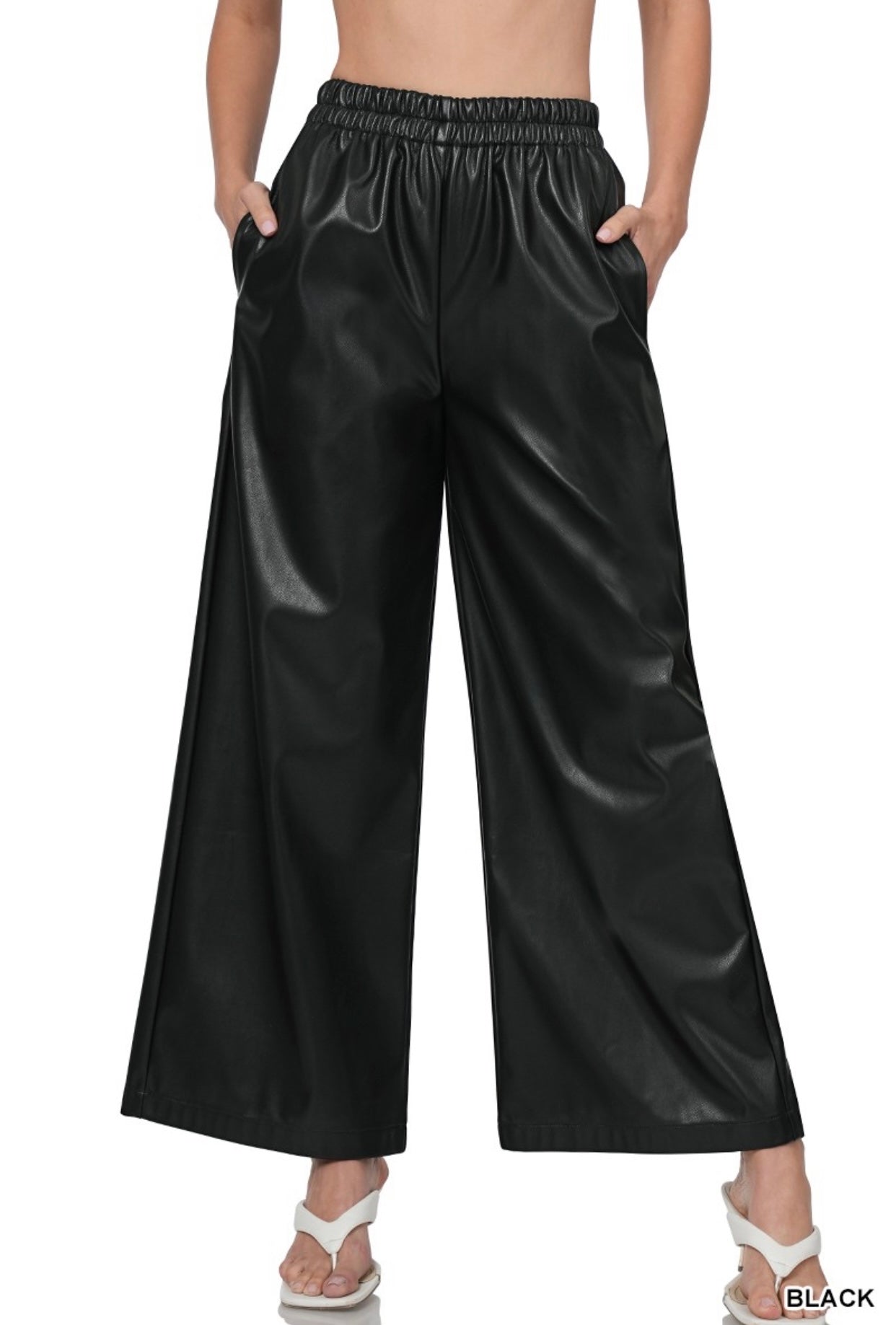 Forever Comfy and Cute Faux Leather Wide Leg Pants