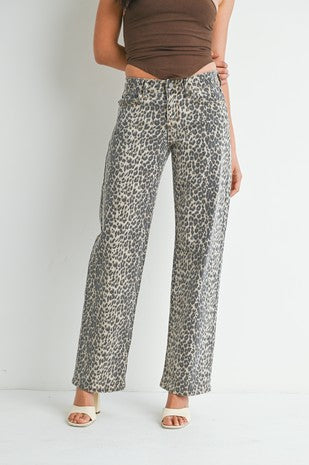 Our Wild For You Leopard Pants are jeans that offer a unique twist on classic denim with their eye-catching, wild leopard pattern, making a statement that's both fierce and fashionable. They provide a comfortable fit that a good amount of stretch. Straight leg fit perfect to wear with heels, ballet flats, or platform Uggs.
