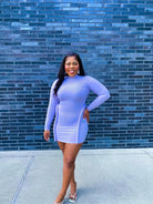 The Zoey Dress comes in a beautiful purple color that will look great on any skin tone. The Zoey features a ribbed texture that feel great. It also has long sleeves to protect your arms in the fall for a fun girl's night out or date night. Tube detail beautifully accentuates the hips to produce a more womanly shape.