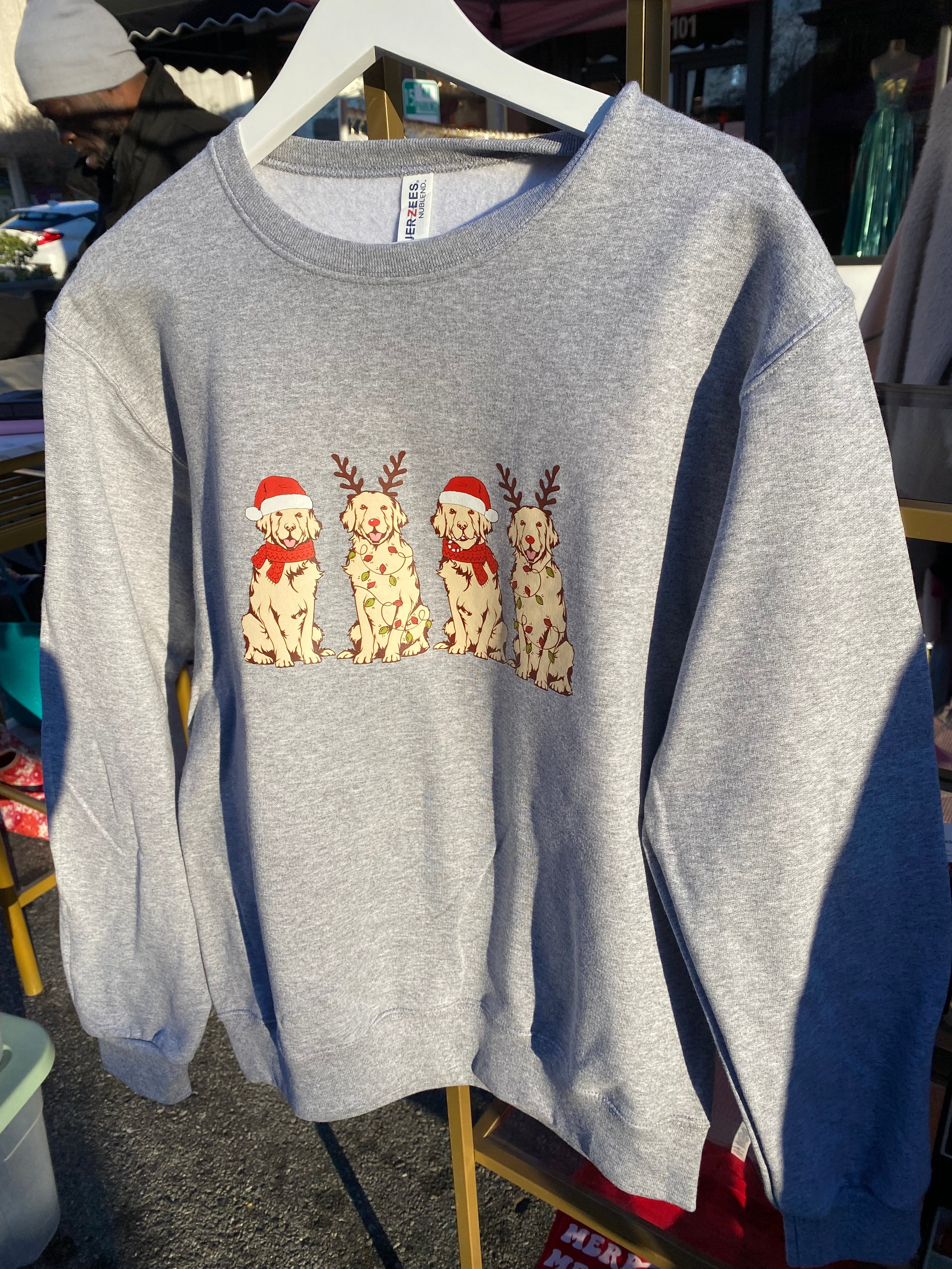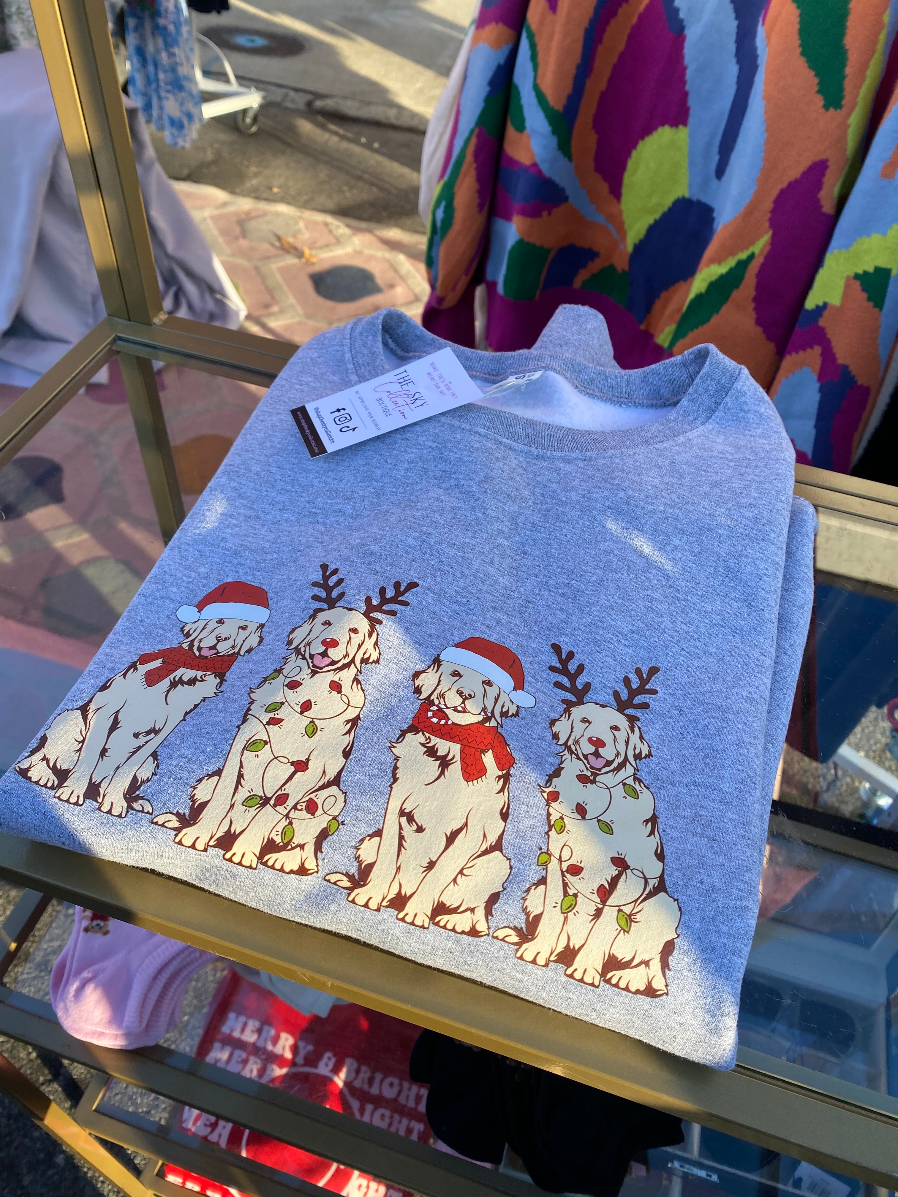 Adorable Christmas buddies sweatshirt on Heather Grey for all the doggie lovers.