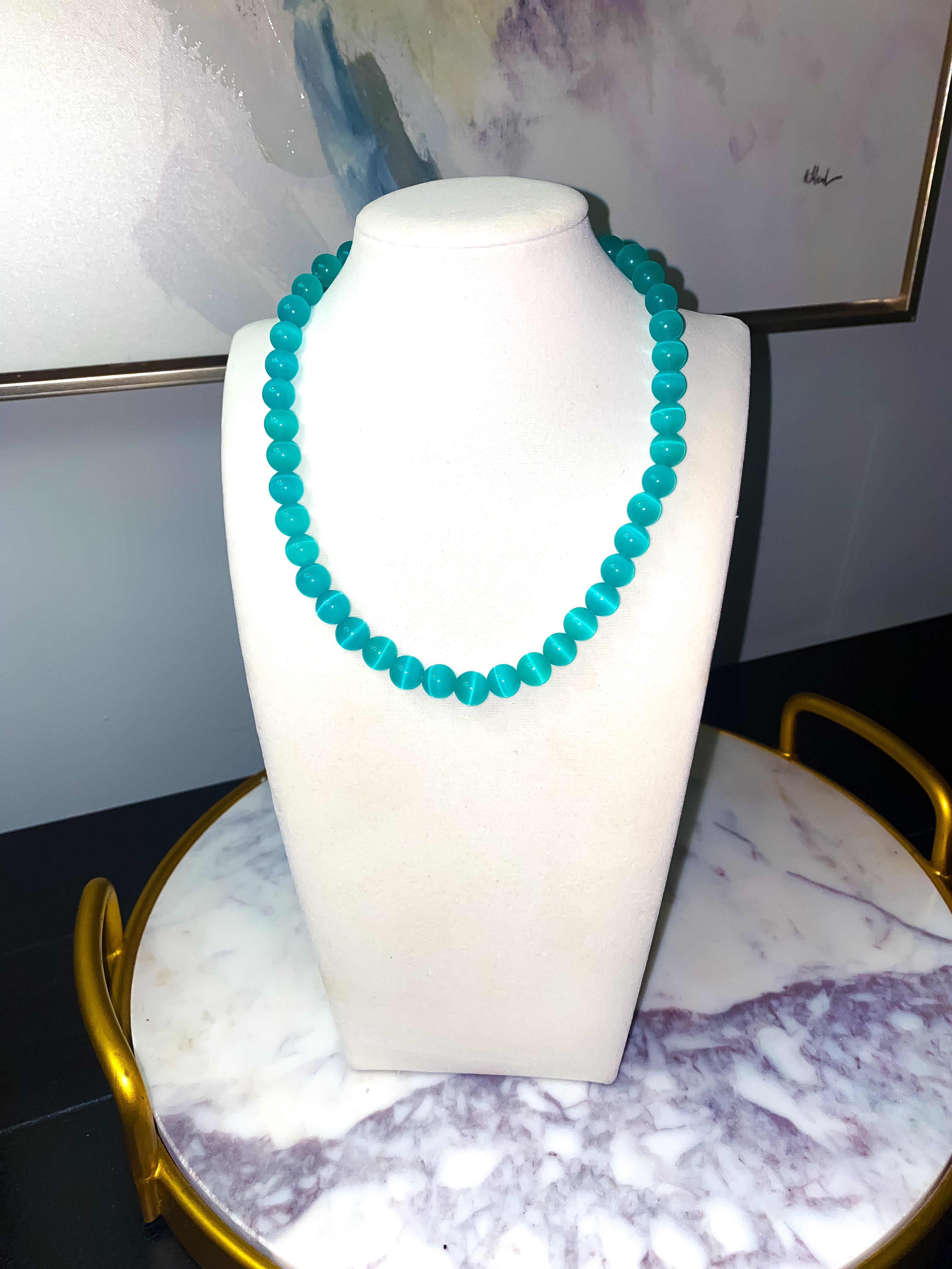 Hart Designs Exclusive! Pretty green beaded gemstone necklace! Gold lobster clasp closure with 3 inch extender.