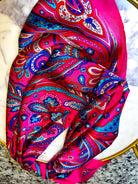 Oversized square scarf. Pink pattern. Perfect to wear as a bandana in hair or around neck, used as your favorite belt or purse charm. Add your own charm for a fun new look.
