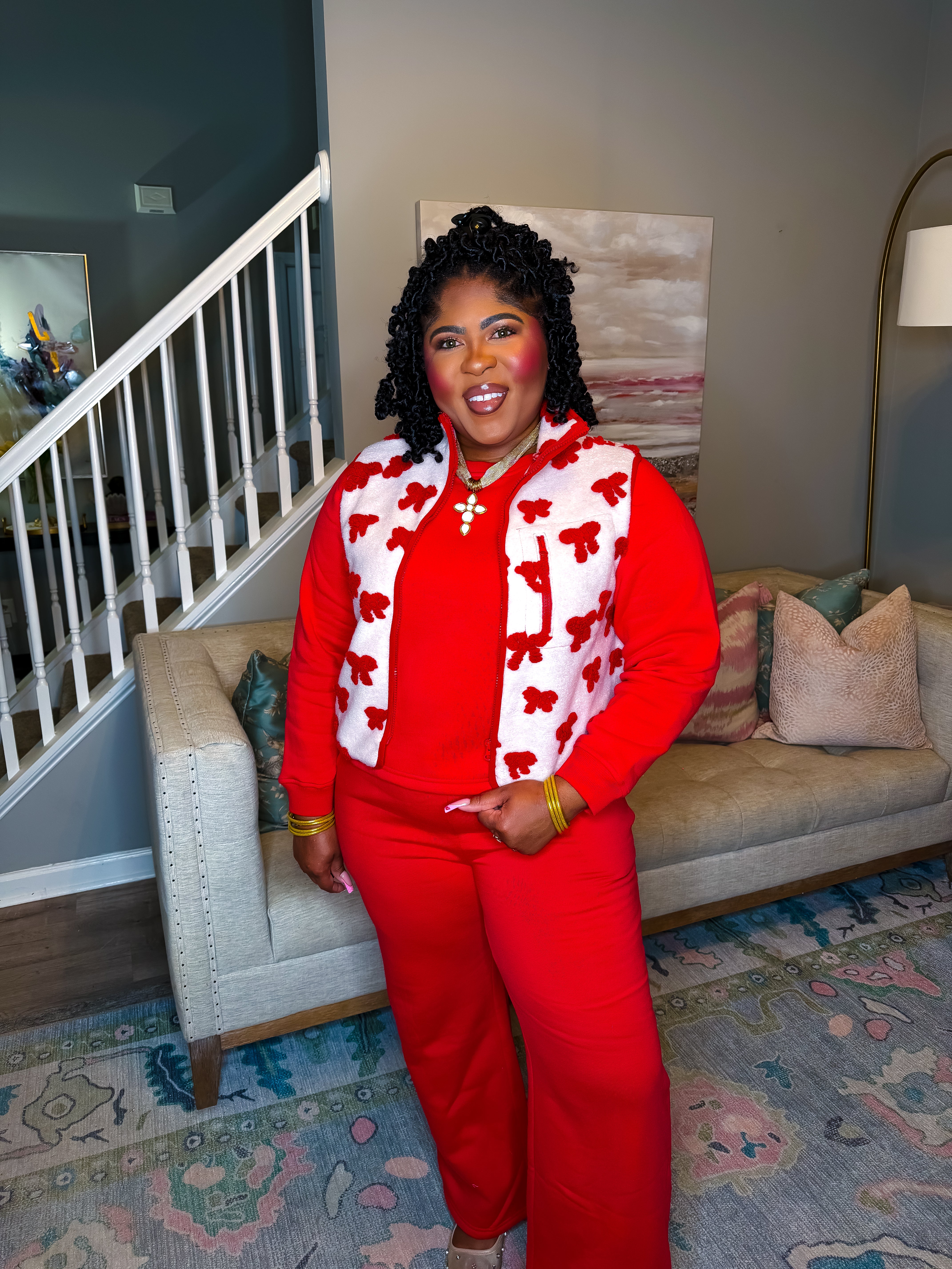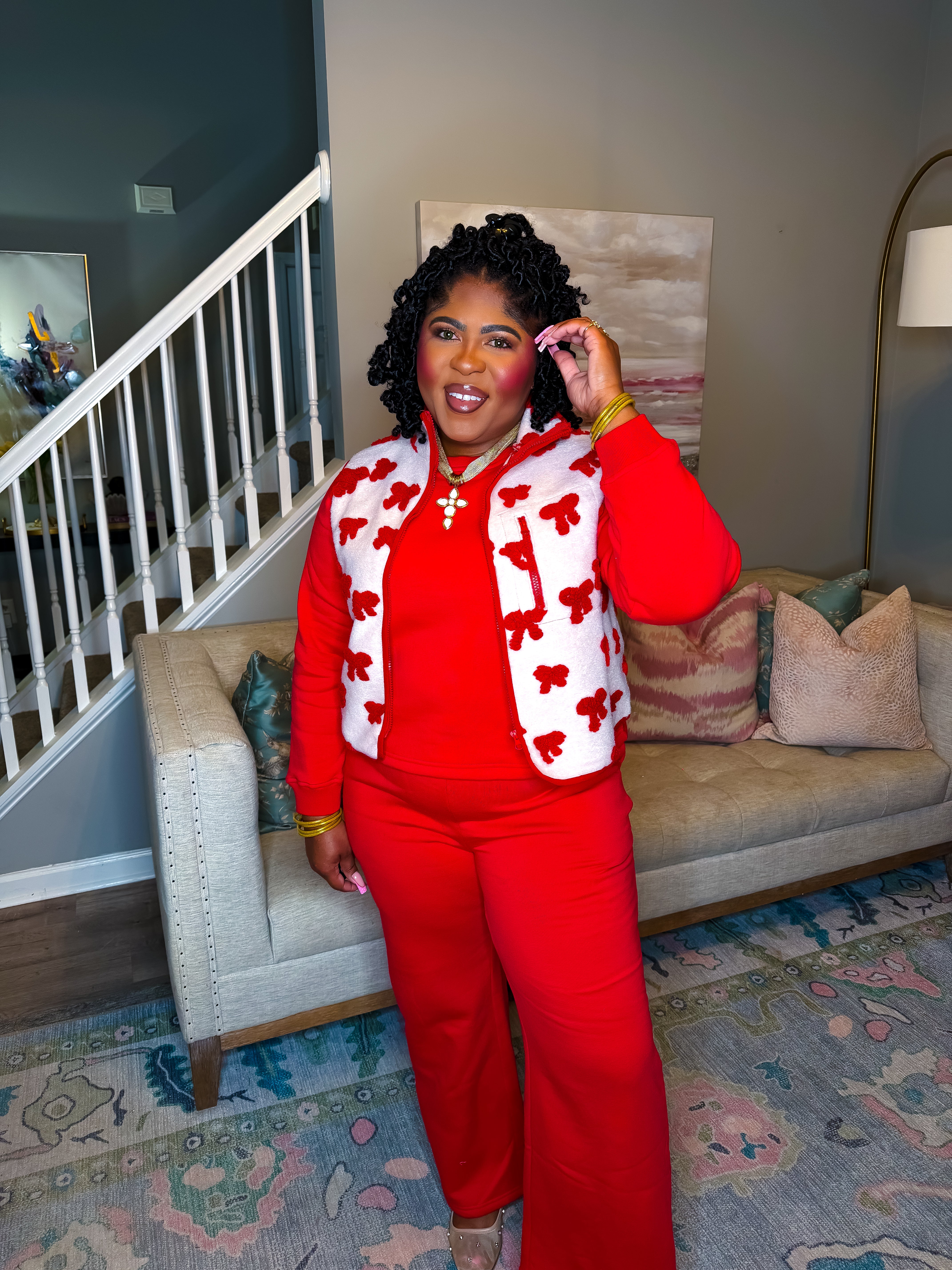 Sherpa Bow Vest-Red