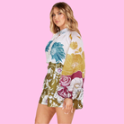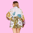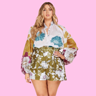 Our Mums the Word Two Piece Set is a showstopper. This set features a gorgeous printed long puff sleeve button down. Elastic wrist with high neck collar. Bottoms feature a complementary printed green pattern with matching belt. Truly a one of a kind piece. Pairs perfect with white knee high boots for a fall look.