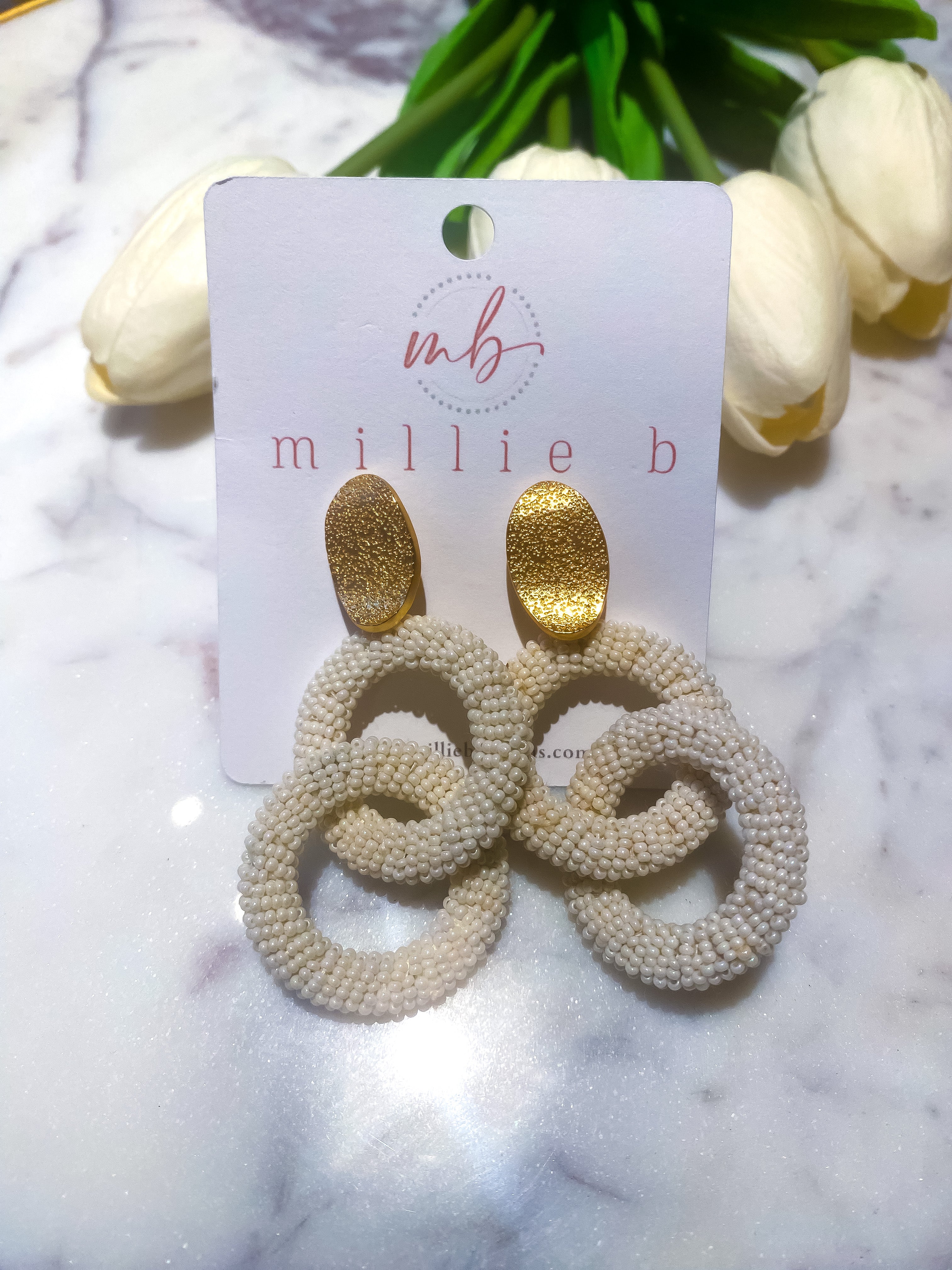The Natalia Earrings are sure to get you noticed! These statement earrings feature a beautiful combination of gold studs and beaded links that will sparkle and shine when the light hits them. Making an entrance has never been easier! So don your finest and be ready to add some pizzazz to your look!